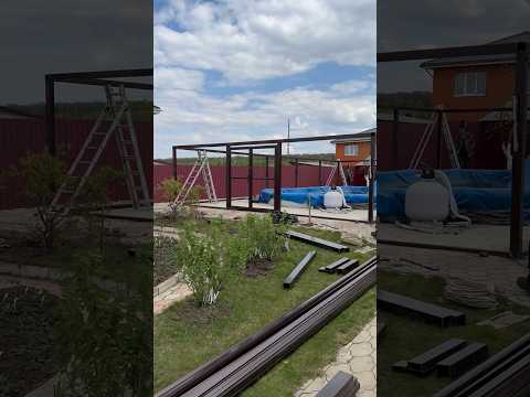 Приступили к сборке навеса из поликарбоната для бассейна