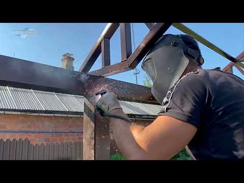 Собрали навес для дачи из металла с кровлей из металочерепицы